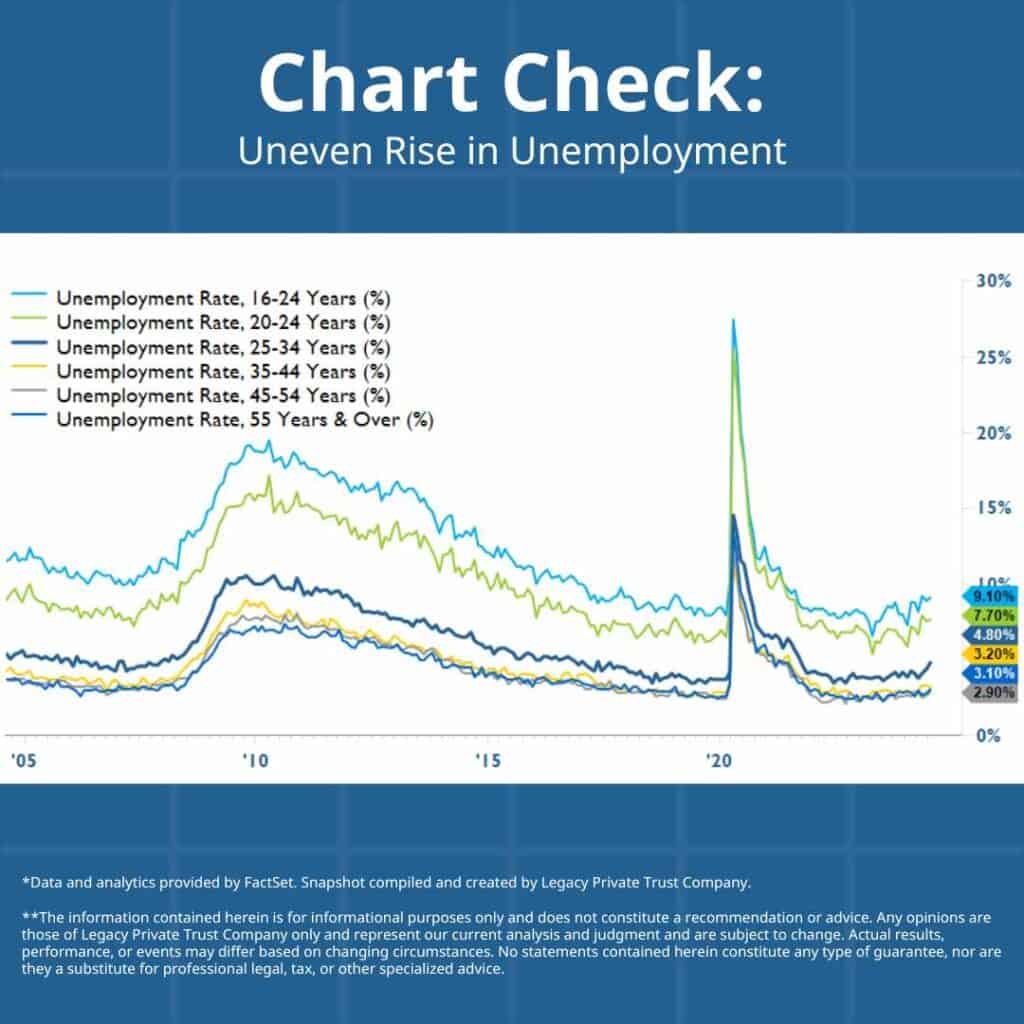 Gregory S. Hansen, Legacy’s Managing Director of Trust Investments, and Connor R. O’Brien, Trust Investment Officer at Legacy, have been instrumental in creating our well-received “Chart Check” series. This series presents pertinent economic content through comprehensible visual graphics and succinct explanations of the depicted data multiple times each month.